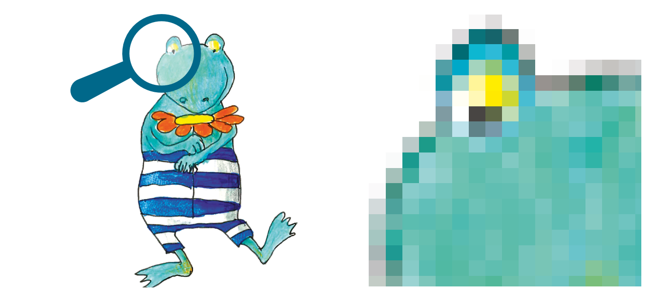 Ein Computer kann nicht sehen, deshalb muss man ihm das Bild in einer Sprache beschreiben, die er versteht – nämlich mit dem binären Zahlensystem. Dazu wird das Bild in viele kleine Teile zerlegt. Diese Teile nennt man auch Pixel.